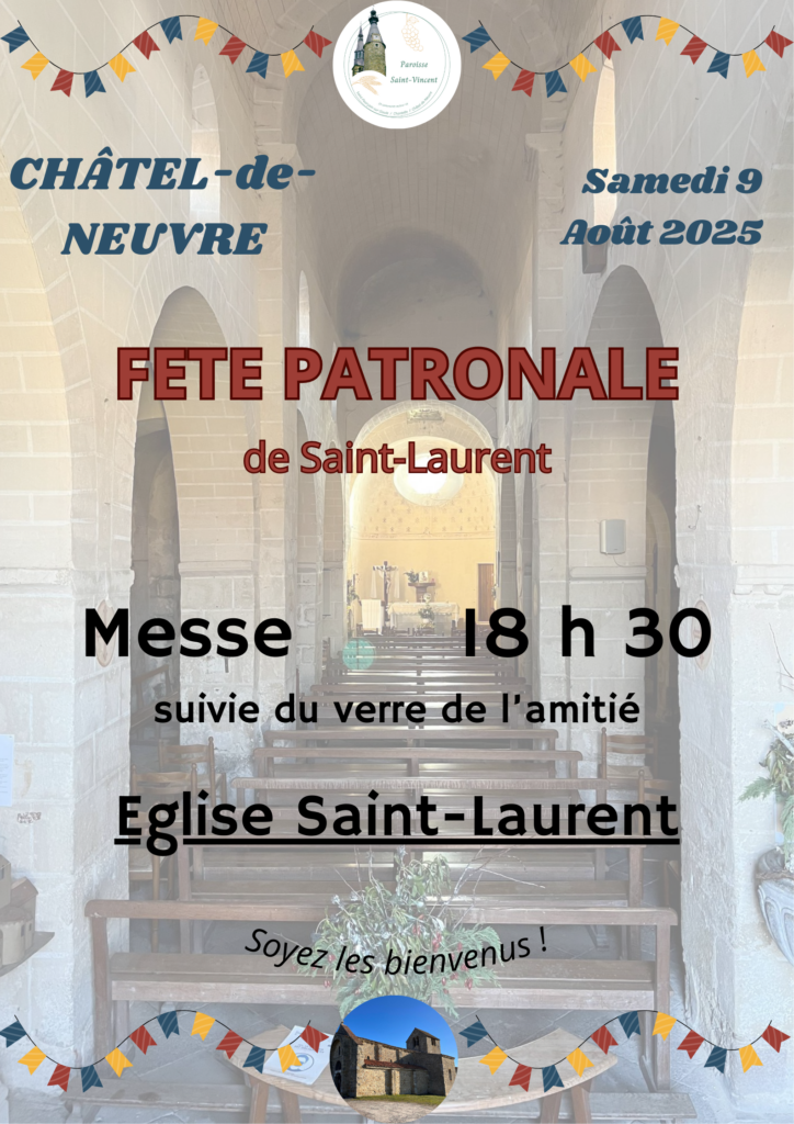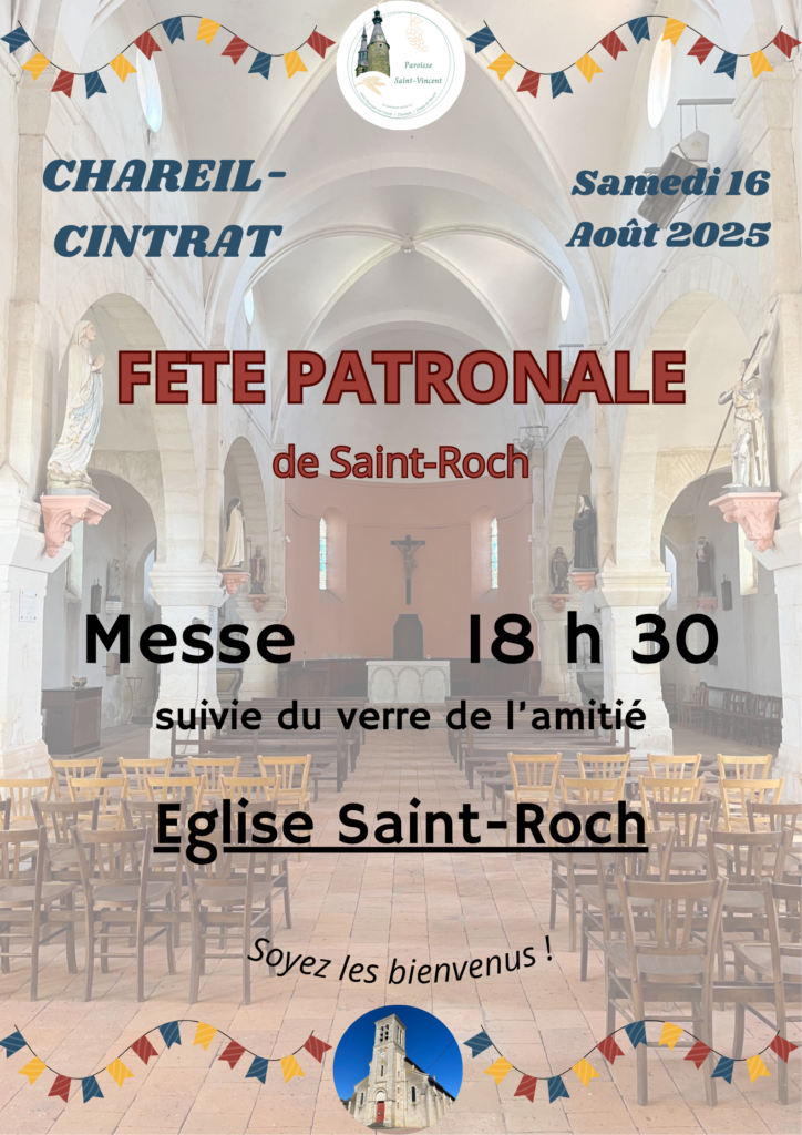Intentions de messe : Familles MÉRITET-PACAUD-SEVERINE-DOUARRE ; Guy CERBELAUD ; Lucien MOMBOISSE ; Laurent TISSANDIER ; Christiane FÉRIAUD ; Jean-Pierre ANDRÉ