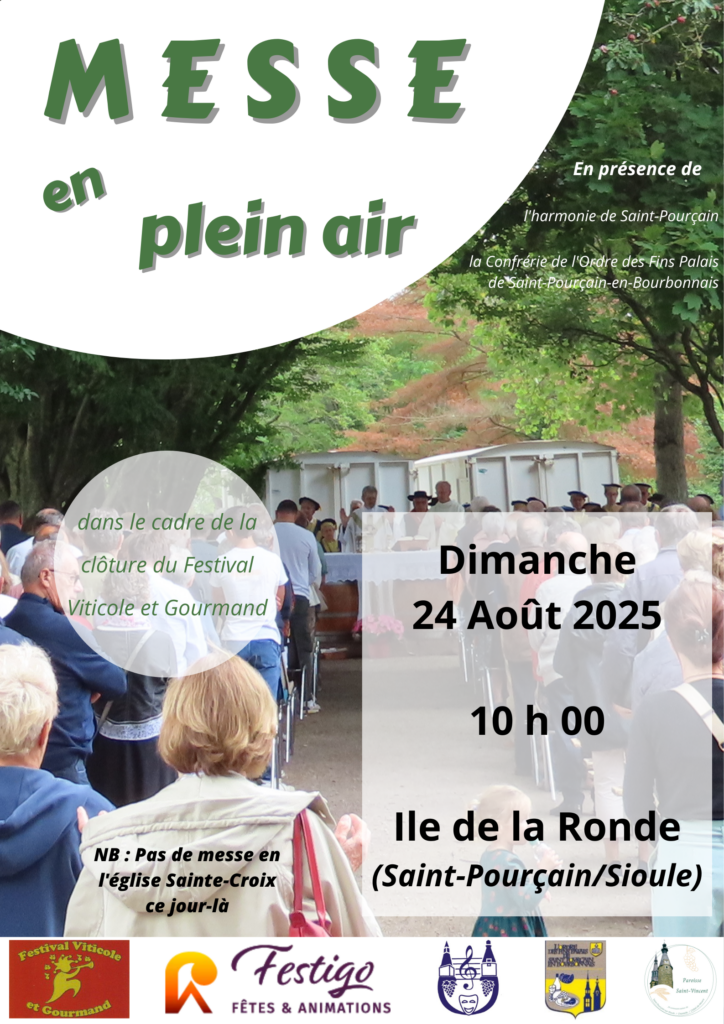 10 h 30 : Messe dominicale en l’église Sainte-Croix de SAINT-POURÇAIN-SUR-SIOULE – fête de Saint-Pourçain et Sainte-Cécile avec l’harmonie municipale