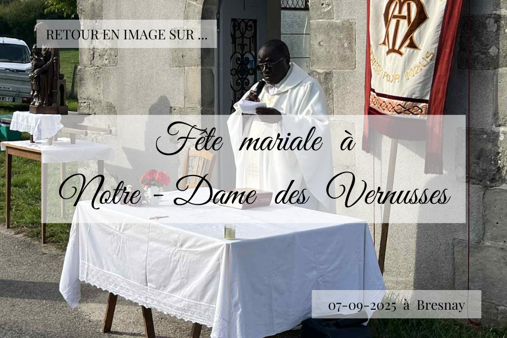 Fête mariale à Notre-Dame des Vernusses Dimanche 7 Septembre 2025 - 16 h 00 - Bresnay Comme la tradition le souhaite, le premier dimanche de Septembre, une messe a été célébrée en plein air à Notre-Dame des Vernusses pour honorer cette vierge. La célébration eucharistique s’est poursuivie avec la...Lire la suite