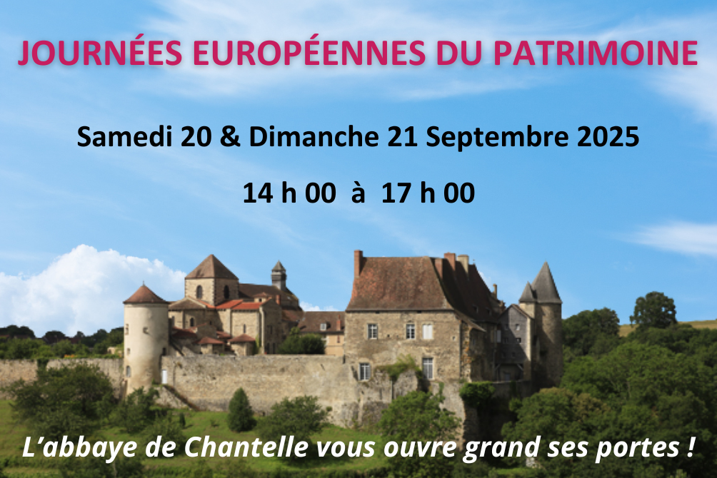 Journées européennes du patrimoine Samedi 20 et Dimanche 21 Septembre 2025 A l'occasion des journées européennes du patrimoine, l'abbaye de Chantelle vous ouvre grand ses portes le Samedi 20 et le Dimanche 21 Septembre prochain de 14 h 00 à 17 h 00. Venez visiter l'église, le cloître, les...Lire la suite