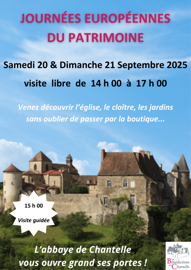 A l’occasion des journées européennes du patrimoine, l’abbaye de Chantelle vous ouvre grand ses portes le Samedi 20 et le Dimanche 21 Septembre prochain de 14 h 00 à 17 h 00.