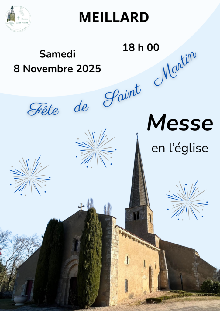 Une messe sera célébrée ce Samedi 8 Novembre à 18 h 00 en l’église Saint-Martin de Meillard à l’occasion de la fête patronale.