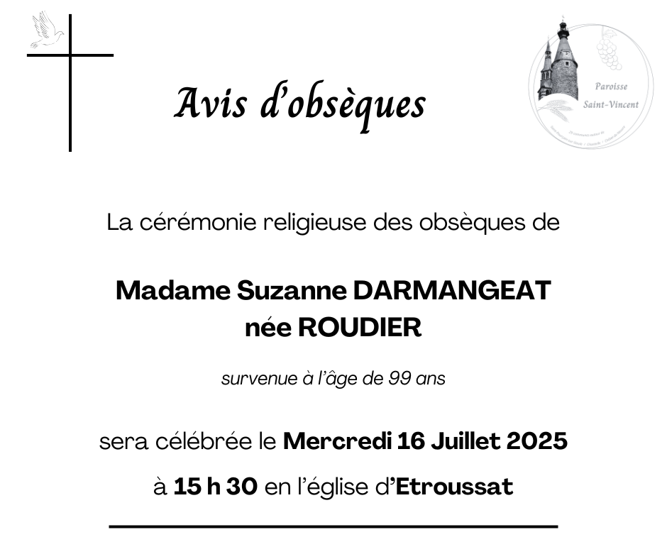Les messes du week-end suivant la célébration des obsèques seront dites à l’intention du défunt.