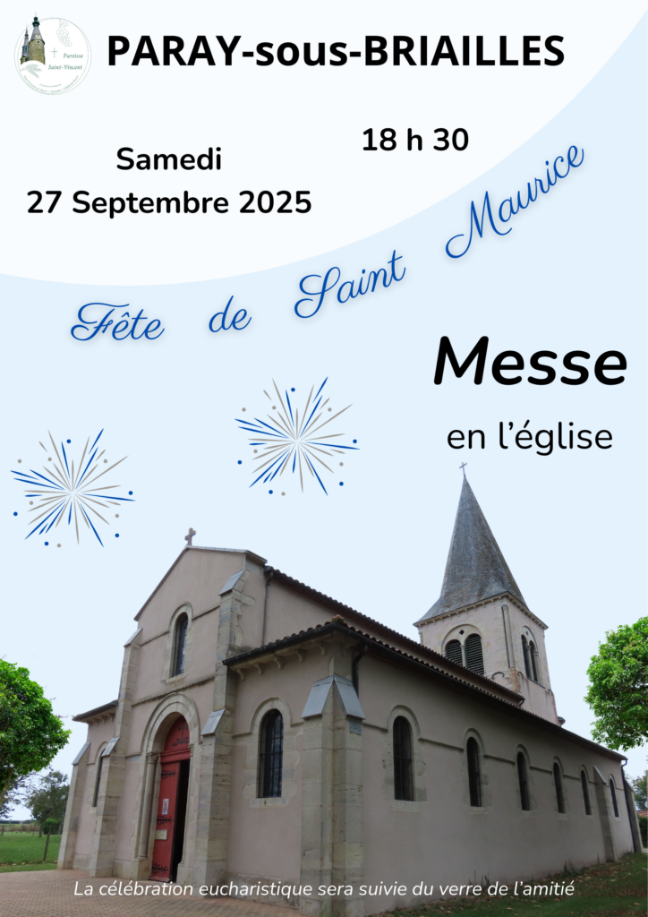 Une messe sera célébrée ce Samedi 27 Septembre à 18 h 30 en l’église Saint-Maurice de Paray-sous-Briailles à l’occasion de la fête patronale.
