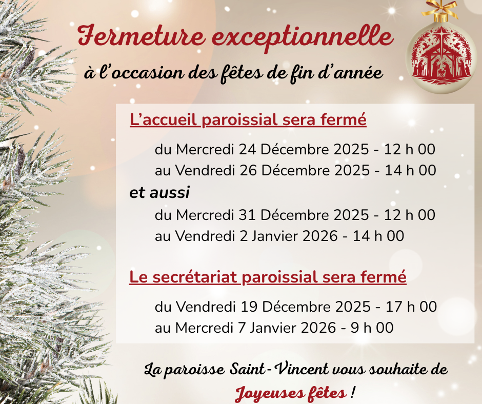 N’hésitez pas à passer pour toute question, vous serez toujours les bienvenus dans notre paroisse Saint-Vincent.