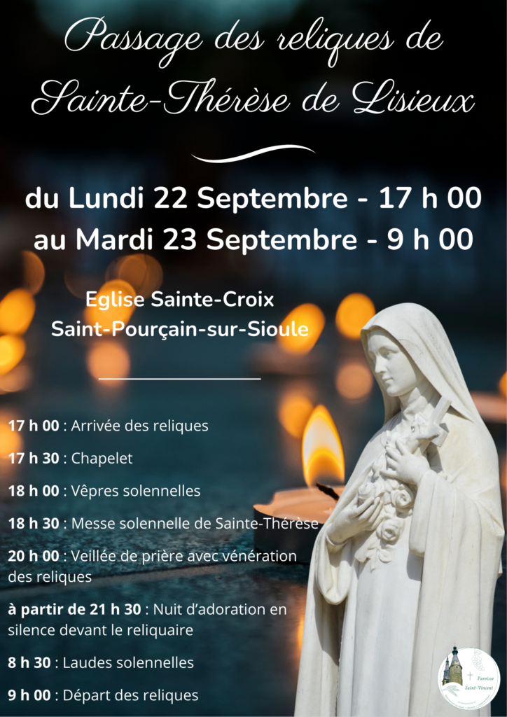 PASSAGE DES RELIQUES DE SAINTE-THÉRÈSE DE LISIEUX – 22 et 23 SEPTEMBRE 2025 – SAINT-POURÇAIN-SUR-SIOULE